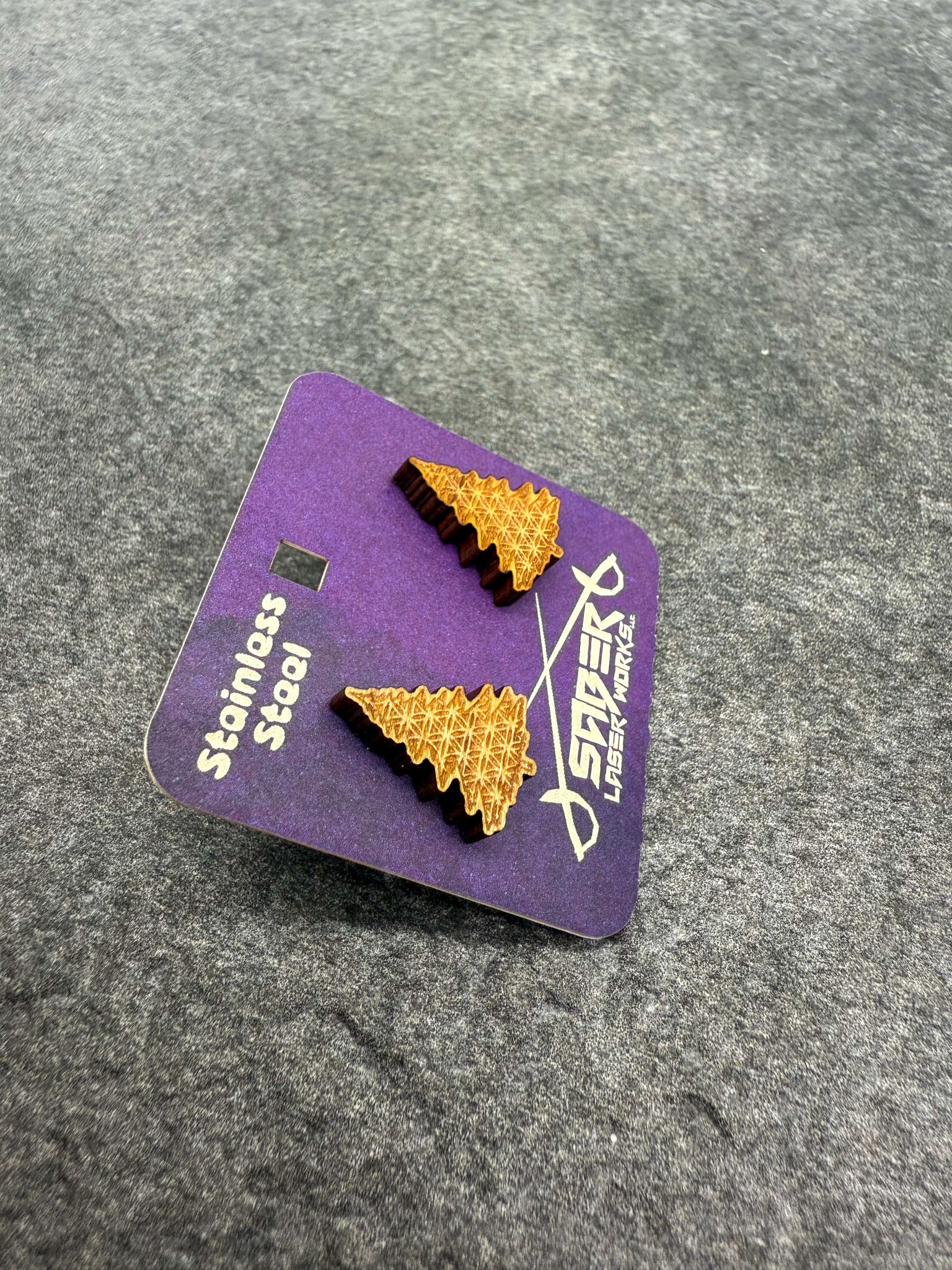 Add a little natural mystique to your wardrobe with these cool tree earrings! Unique pine tree cutouts feature an intricate flower of life pattern that speaks volumes about your style (and your love for nature!).